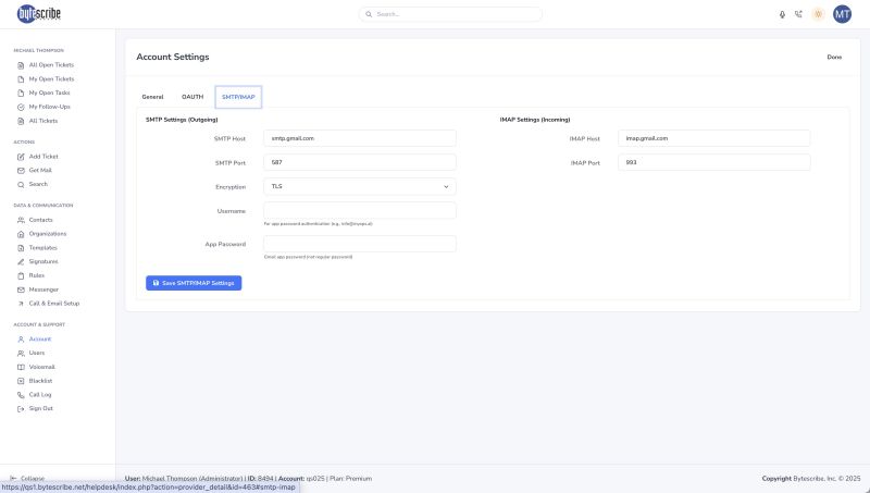Regularly reviewing and maintaining account settings helps avoid disruptions in communication. For example, if your email provider requires app-specific passwords, those should be updated in the SMTP/IMAP tab. If your organization rotates API credentials for security purposes, the OAuth tab should be updated accordingly. Administrators should also verify that agents’ general information, such as time zones and emails, remain correct—especially when onboarding new staff or transitioning roles. Keeping these fields up to date ensures that your helpdesk continues to operate smoothly, with accurate reporting and uninterrupted customer communication.